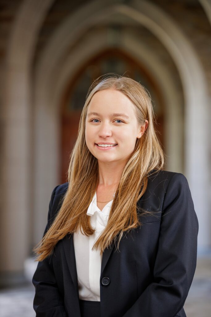 Kaylie Barber grew up in Volant, Pennsylvania. She graduated summa cum laude from Pennsylvania State University, where she majored in Mechanical Engineering and minored in Mechatronics. She acted as a co-Student Marshall for Mechanical Engineering and graduated from Schreyer Honors College, completing a research thesis in compliant origami swimming robots. Before law school, she worked for John Deere Construction and Forestry, where she assisted in testing and data collection on heavy equipment as well as in intellectual property and litigation issues. In addition to Law Review, Kaylie works as a teaching assistant for Professor Julian Velasco’s Contracts class. Kaylie spent her 1L summer with Dinsmôre and Shohl in the patent prosecution practice group, and she will be returning to Dinsmôre for her 2L summer as well as after graduation. In her free time, she enjoys hiking, blacksmithing, woodworking, and running with her fiancé and twin sister.